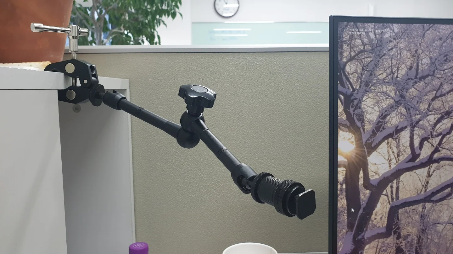 Хороший кронштейн. Сначала показалось, что есть брак, так как при ослаблении болта шаровые шарниры очень слабо зафиксированы и легко проворачиваются. Но при затягивании болта все надежно фиксируется, как колено, так и шаровые втулки. Очень удобно!