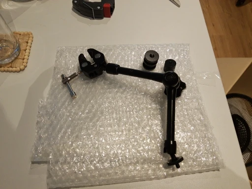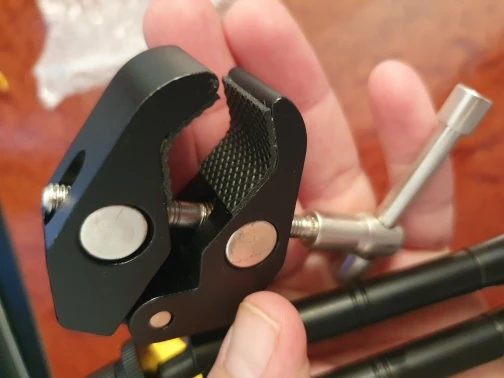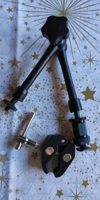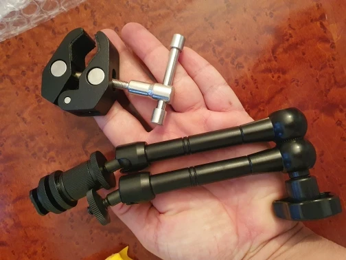 очень хороший держатель, идеально изготовлен,крепкий, компактный.осообенность в том,что при зажимании центрального барашка зажимаются все соединения прочно.Это. очень удобно и экономит время.Рекомендую всем,кому нужны подобные держатели.