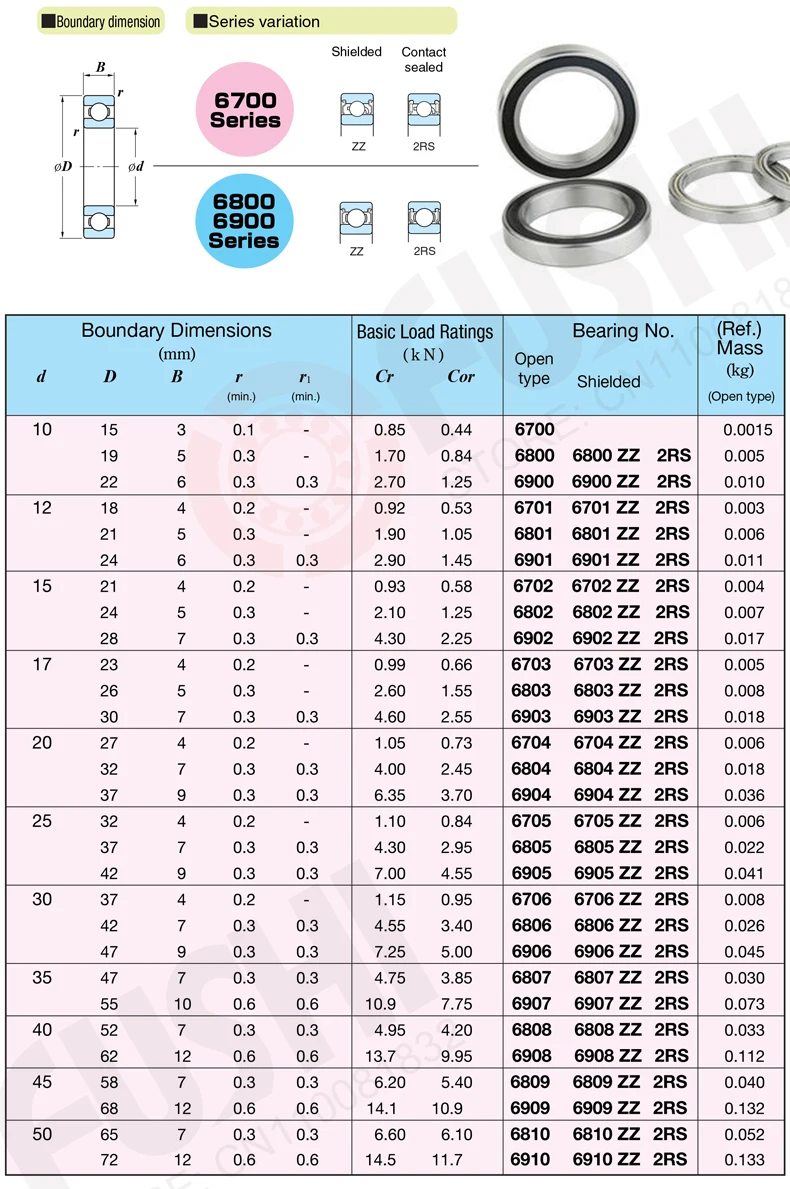Небольшой размер и легкий весВ самых популярных типах подшипников, серии 6000, необходимое пространство для их установки будет уменьшено до около 1/3.Различные уплотнительные типаШирокий выбор доступен в монтажных способах и системе смазки, для экранированного типа, бесконтактного типа Герметичный и контактного типа герметичный подшипник.С низким крутящимся элементомНебольшая площадь поперечного сечения означает, что эти подшипники требуют низкого крутящего момента.Кроме того, серия подшипников 6700 включает особенно контактные уплотнения с низким коэффициентом трения.