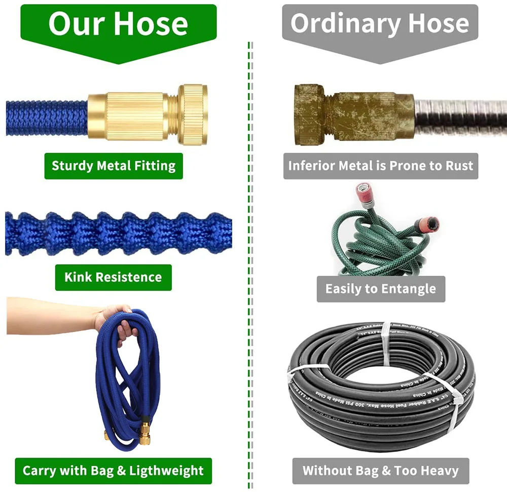 ①. Более прочный: Этот садовый шланг изготовлен из высококачественных материалов и новейшего дизайна. Не нужно покупать садовые шланги каждый сезон.②. Никогда не ржавеет: фитинги из твердой латуни 3/4 '', латунный соединитель не сломается, не трескается, протекает или не подвержен коррозии, он может выдерживать температуру от-10 ℃ до 108 ℃.③. Идеальный Размер садового шланга: как и магия, расширяемый садовый шланг расширяется, когда вода включена.Затем он «сжимается» до третьей части своего размера, когда вода отключается у крана.④.No-Kink: этот новый разработанный расширяемый садовый шланг никогда не запутывается, не скручивается или не скатывается.⑤. Очень прост в использовании и хранении: лучший дизайн расширяемого шланга облегчает полив.Кроме того, этот садовый шланг очень легкий, гибкий, легко носить с собой, хранить и перемещать, экономит ваше пространство.