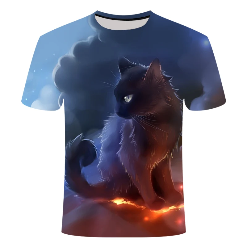 Футболка Мужскаяженская с 3D-принтом кота, забавный топ с коротким ...