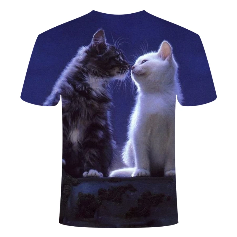 Футболка с 3D-принтом кошки, для мужчин и женщин, летние Забавные т...