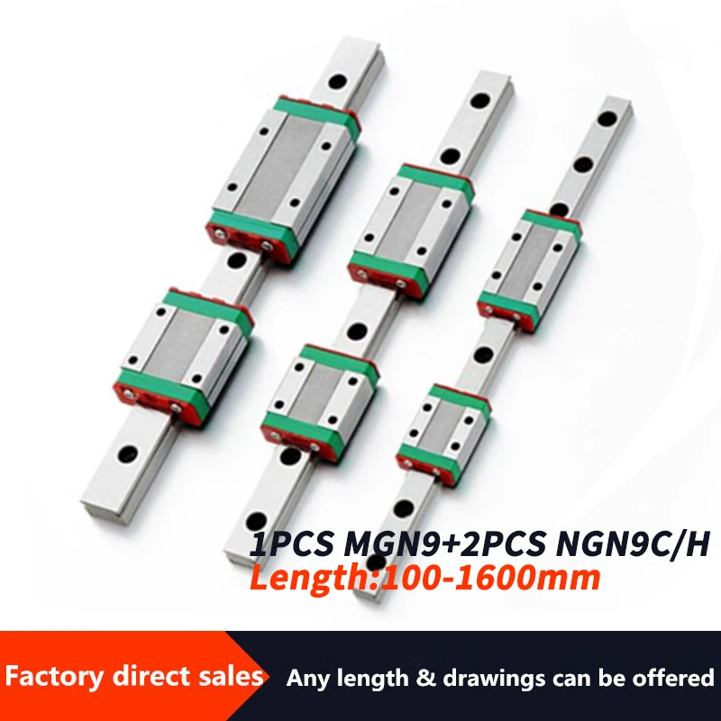 1 линейная направляющая MGN9 100 мм-1600 мм + 2 слайдера MGN9C или MGN9H для ЧПУ деталей 3D принтеров