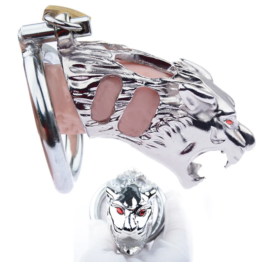 Металлическая клетка верности для мужчин, кольцо на пенис с головой тигра из нержавеющей стали, мужской ремень с замком, мужские игры для взрослых, блокируемые секс-игрушки 404550 мм
