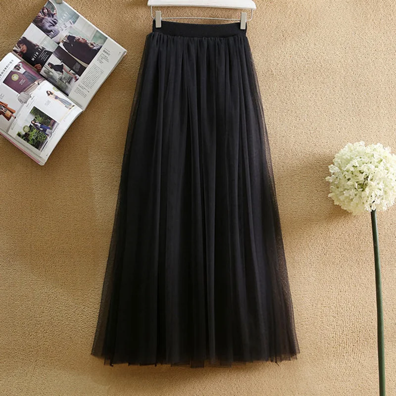 2020 Новая летняя Высококачественная Милая длинная сетчатая юбка средней длины с высокой талией трапециевидная однотонная облегающая модная сетчатая юбка из пряжи