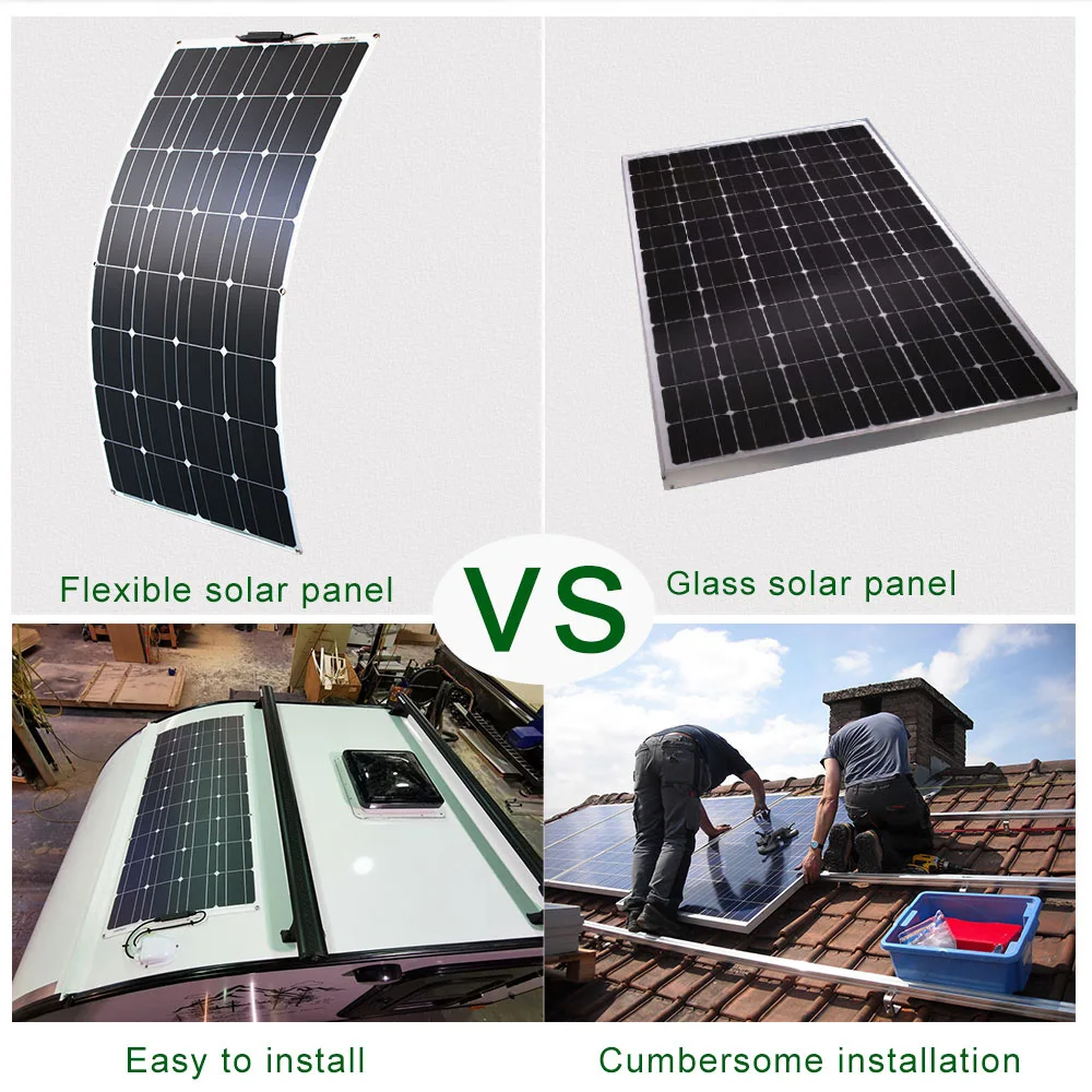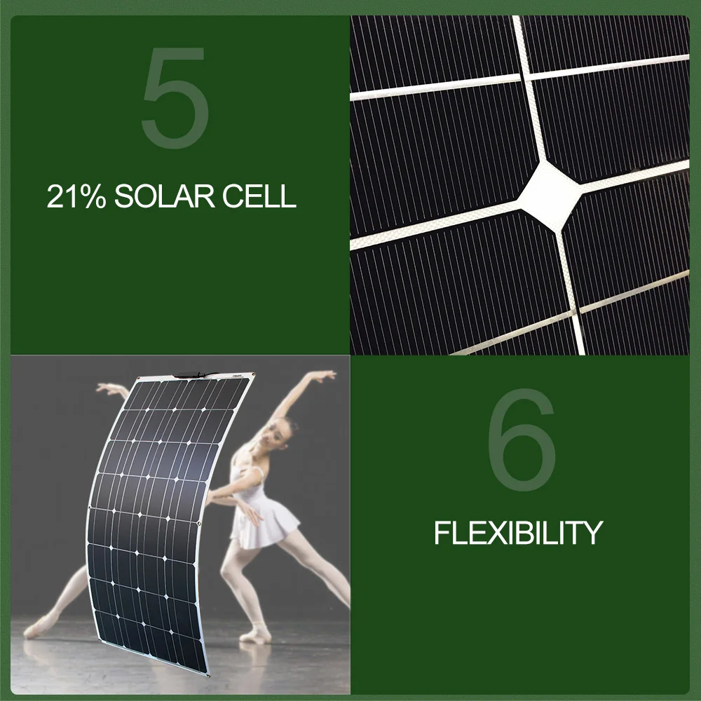 ETFE PET 300 Вт 200 Вт 100 Вт Гибкая солнечная панель черная монокристаллическая ячейка 12 В 24 в зарядное устройство 1000 Вт домашний комплект
