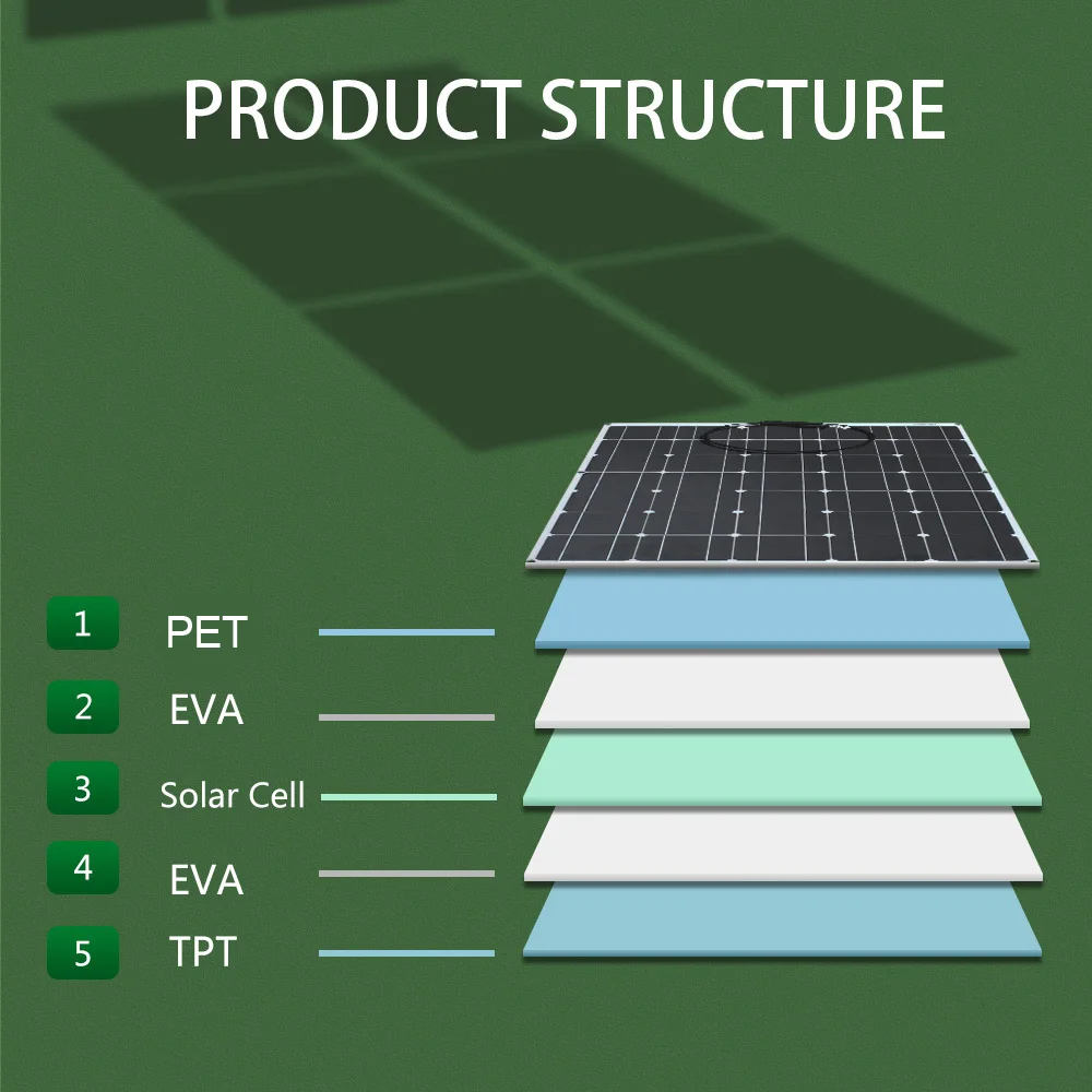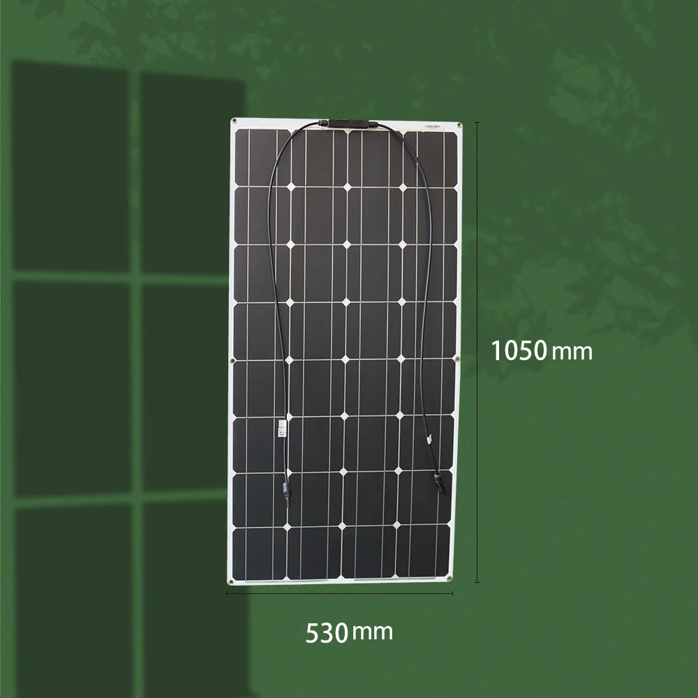 Отличается от традиционных солнечных панелей, которые являются жесткими и часто заключены в закаленное стекло, 100 Вт Гибкая солнечная панель является чем-либо, кроме традиционного. Гибкая солнечная панель 100 Вт тонкая и способна сгибать до 30 градусов, что легко устанавливается на изогнутых поверхностях, высокая эффективность до 21% с небольшим размером для большой выходной мощности, светильник весит всего 2 кг всего четверть его традиционной 100 Вт стеклянной солнечной панели. Эта панель также может использоваться для различных применений, включая питание на лодке, фургоне, гольф-машине, трицикл, крышу палатки, даже если вы повесили на окно, чтобы включить свет и другие приложения постоянного тока. 100 Вт солнечная панель может заряжать 12В или 24В батареи или зарядного устройства 3,7 V, 6V, 9V устройств с регулятором.