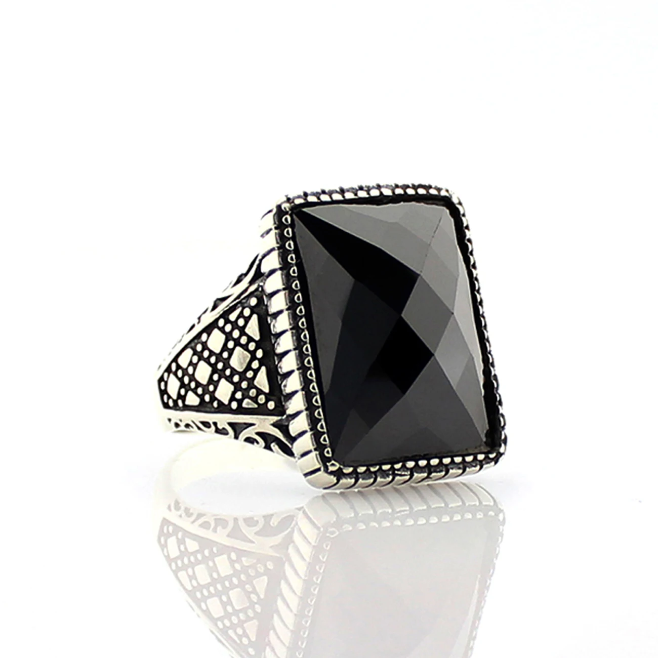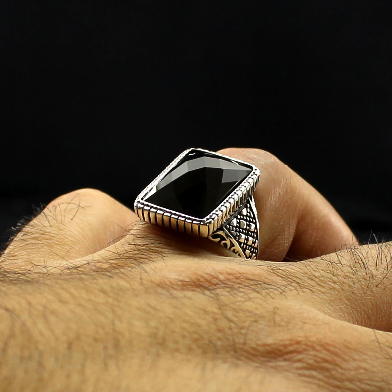 Кольцо мужское из серебра 925 пробы с натуральным камнем, с цирконием и ониксом