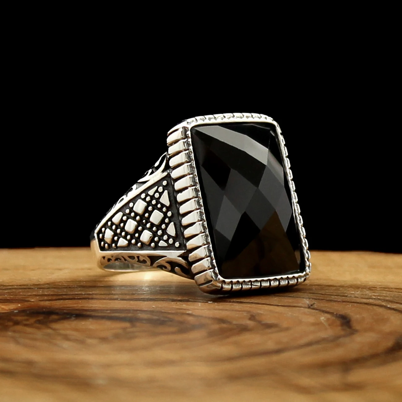 Мужское кольцо из серебра 925 пробы с натуральным черным Цирконом и...