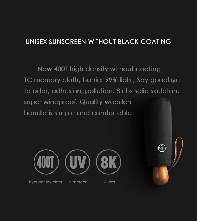 Новая ткань с эффектом памяти TC 400T высокой плотности без покрытия, барьер 99% светильник, попрощайтесь с запахом, адгезией, загрязнением. Твердый каркас с 8 ребрами, очень ветрозащитный. Качественная деревянная ручка проста и удобна.