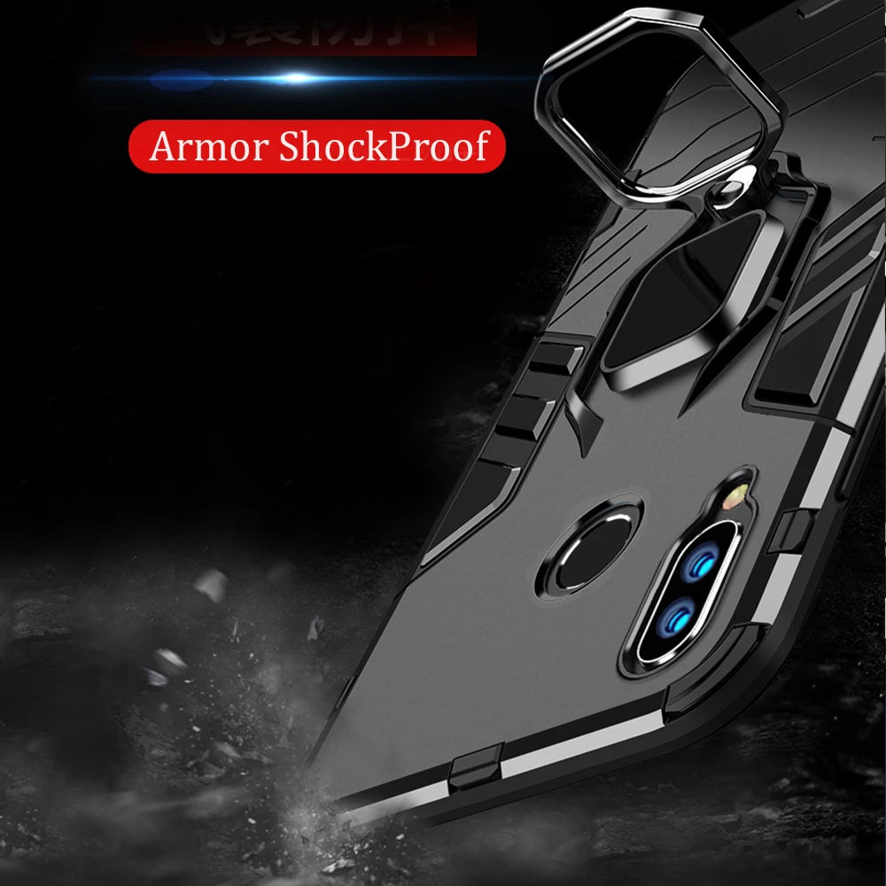 Чехол для Honor 10 Lite, чехлы для телефонов Huawei P Smart 2019, задняя крышка из поликарбоната, прочный Усиленный бампер, армированный Чехол-держатель с кольцом на палец