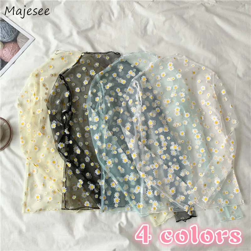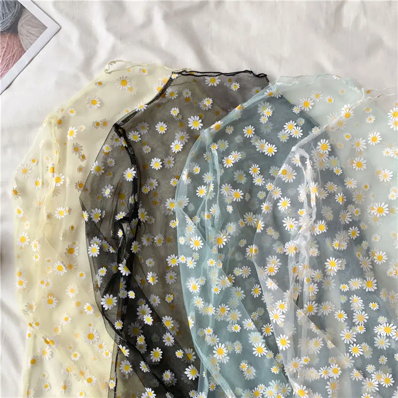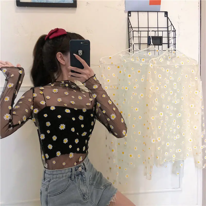 Корейский стиль, сетчатый топ с маргариткой, новинка 2020, в стиле ...