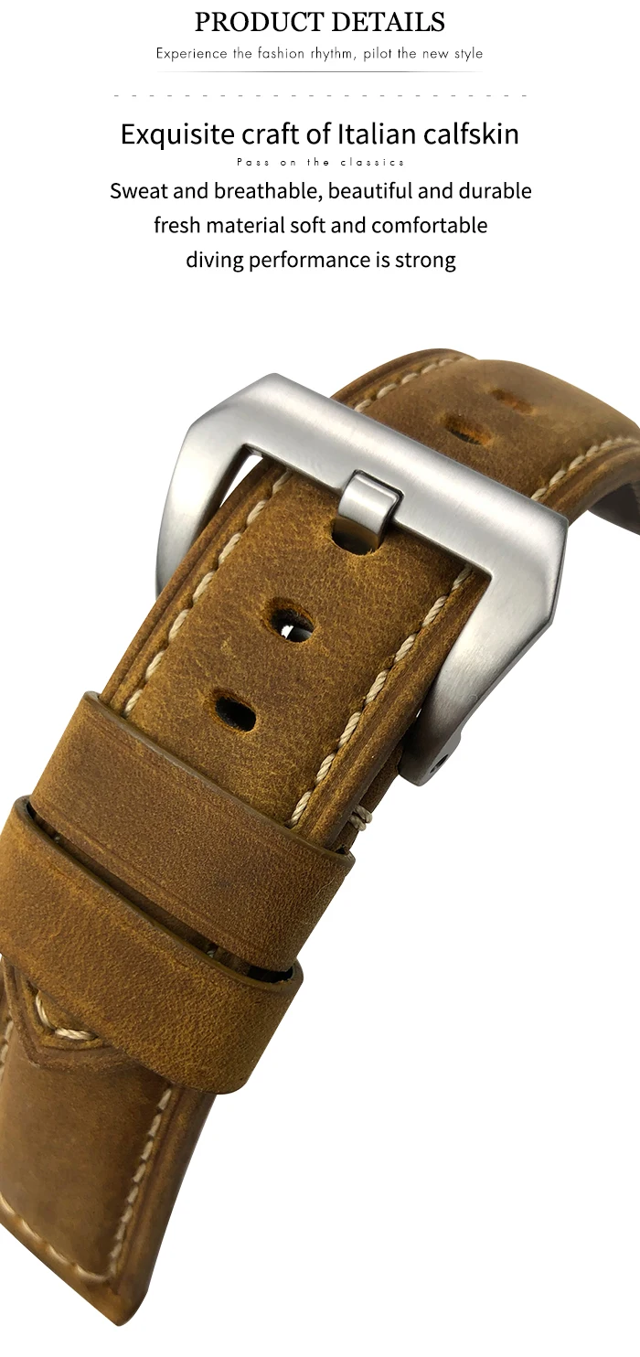 Ремешок из телячьей кожи для наручных часов PANERAI LUMINOR 1950 PAM004410035900510, сменный Браслет с пряжкой с язычком, 24 мм, высокое качество