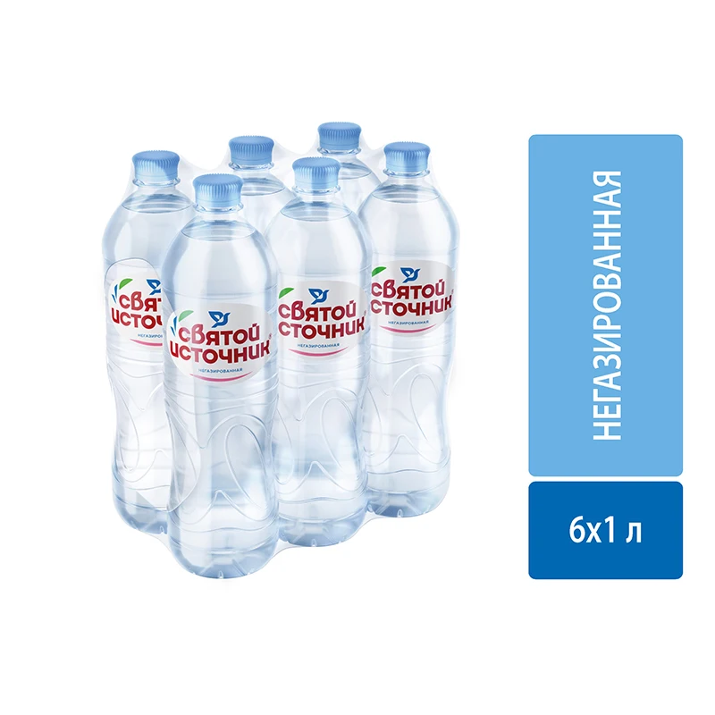 Питьевая вода «Святой Источник» негазированная. Добывается из артезианских скважин, расположенных в заповедных уголках российской природы. Имеет оптимальный состав солей и минералов. Подходит для ежедневного потребления. Компактная упаковка удобна для загородных поездок.