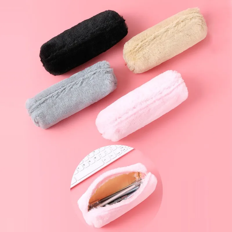 1 @ # розовый плюшевый милый однотонный пенал, сумка для карандаше...