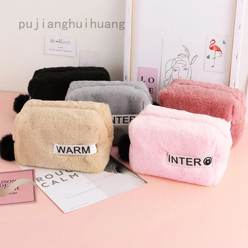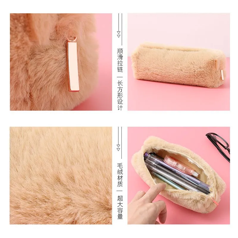 1 @ # розовый плюшевый милый однотонный пенал, сумка для карандаше...