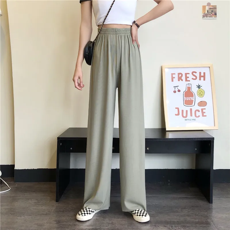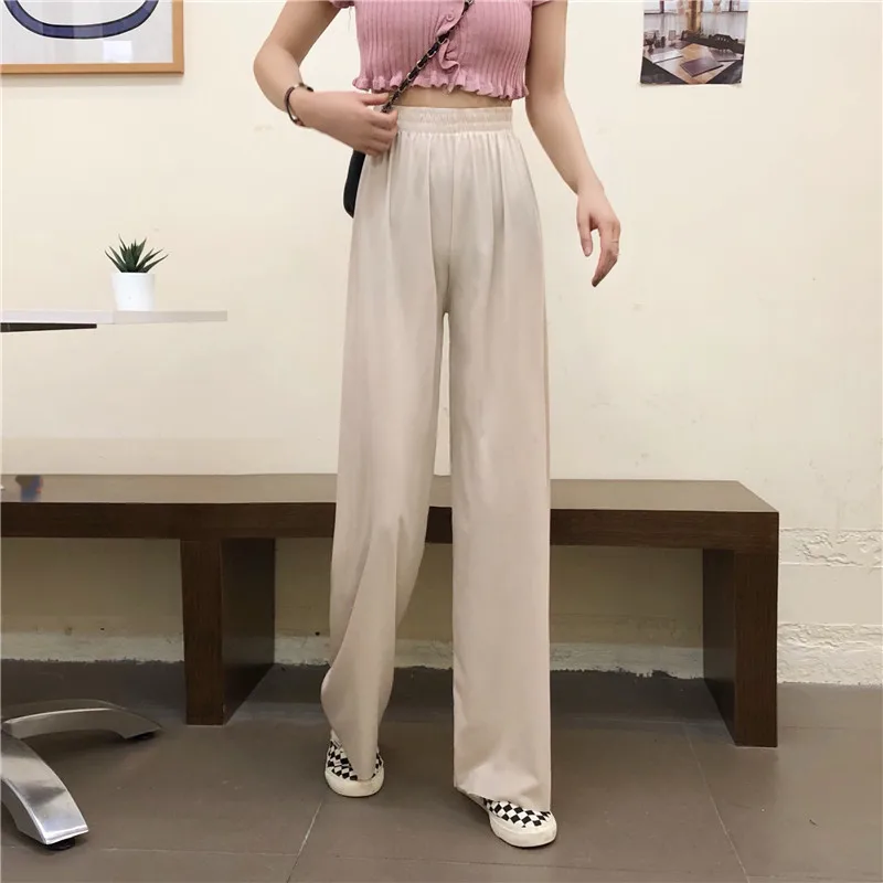 Брюки женские с широкими штанинами, элегантные минималистичные однотонные черные эластичные штаны с завышенной талией, модные мягкие брюки полной длины, лето