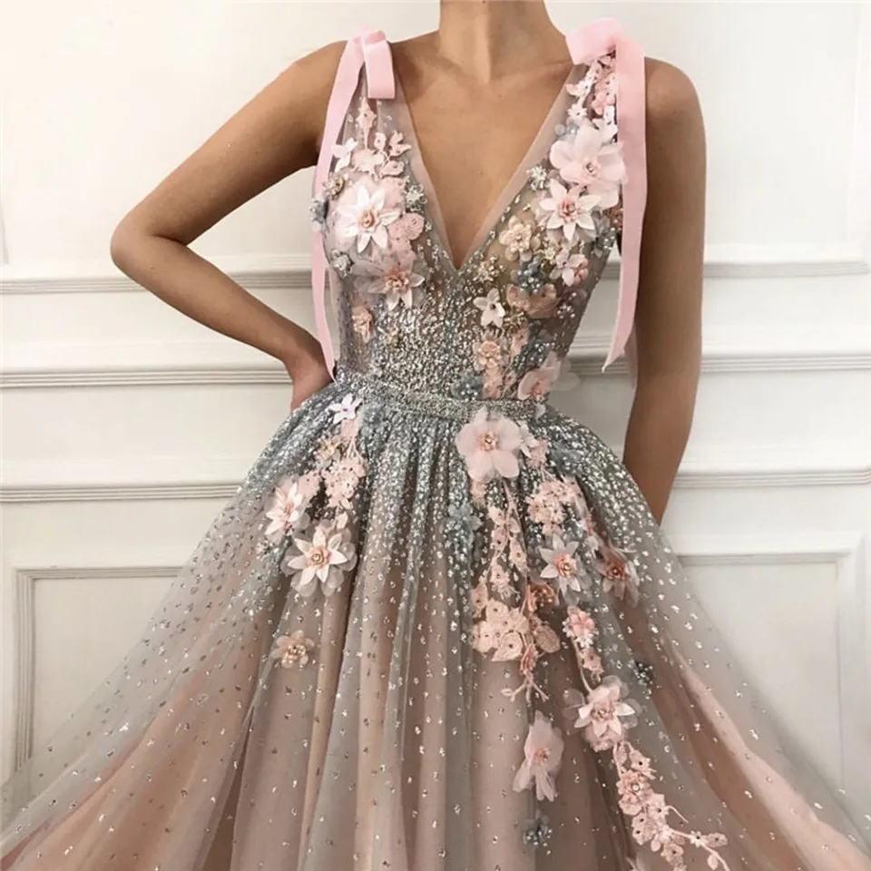 Женское длинное платье из тюля, элегантное вечернее платье телесного розового цвета с аппликацией для выпускного вечера, 2020