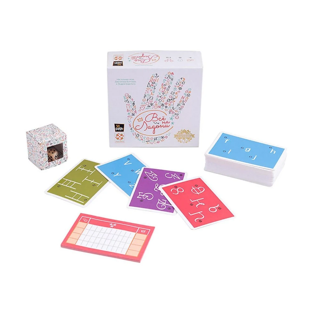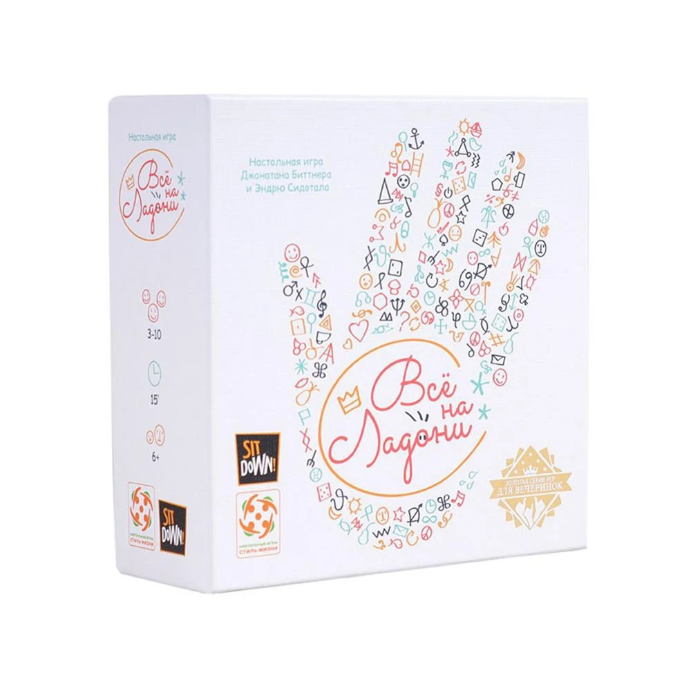 Кооперативная игра выполнена в лаконичном дизайне. В процессе участники активно взаимодействуют и развивают доверие. Игроки будут доносить информацию до других при помощи тактильных ощущений. На ладони соседа рисуется символ, а он, в свою очередь, должен нарисовать такой же следующему человеку. Смогут ли все распознать изображённый элемент и замкнуть цепочку с правильными ответами?Правила игры:Партия состоит из 10 раундов. Случайным образом выберите первого игрока. Этот игрок получает коробочку с кубиком. В начале каждого раунда, за исключением первого, передайте коробочку следующему игроку по часовой стрелке. Став первым игроком, выполните следующие действия:1. Встряхните коробочку (прикрыв окошко ладонью, чтобы кубик не выпал) и поставьте её на стол.2. Возьмите верхнюю карточку из стопки и тайно от других игроков посмотрите на её нижнюю сторону. Результат на кубике (который через окошко в коробочке можете увидеть вы) показывает, какой символ необходимо передать остальным игрокам. Если на кубике выпал «?», вы можете сами выбрать, какой символ рисовать. В этом случае, чтобы запомнить свой выбор, переверните кубик в коробочке нужным вам значением вверх3. Указательным пальцем нарисуйте загаданный символ на ладони своего соседа слева. Затем игрок слева от вас рисует такой же символ на ладони своего соседа слева и так далее до последнего игрока, который также должен нарисовать символ на вашей ладони. Таким образом, вы поймёте, удалось ли всем игрокам правильно понять первоначальный символ.4. Запишите свой результат в таблицу.Характеристики:• количество игроков: 3-10• время игры: 10 минут