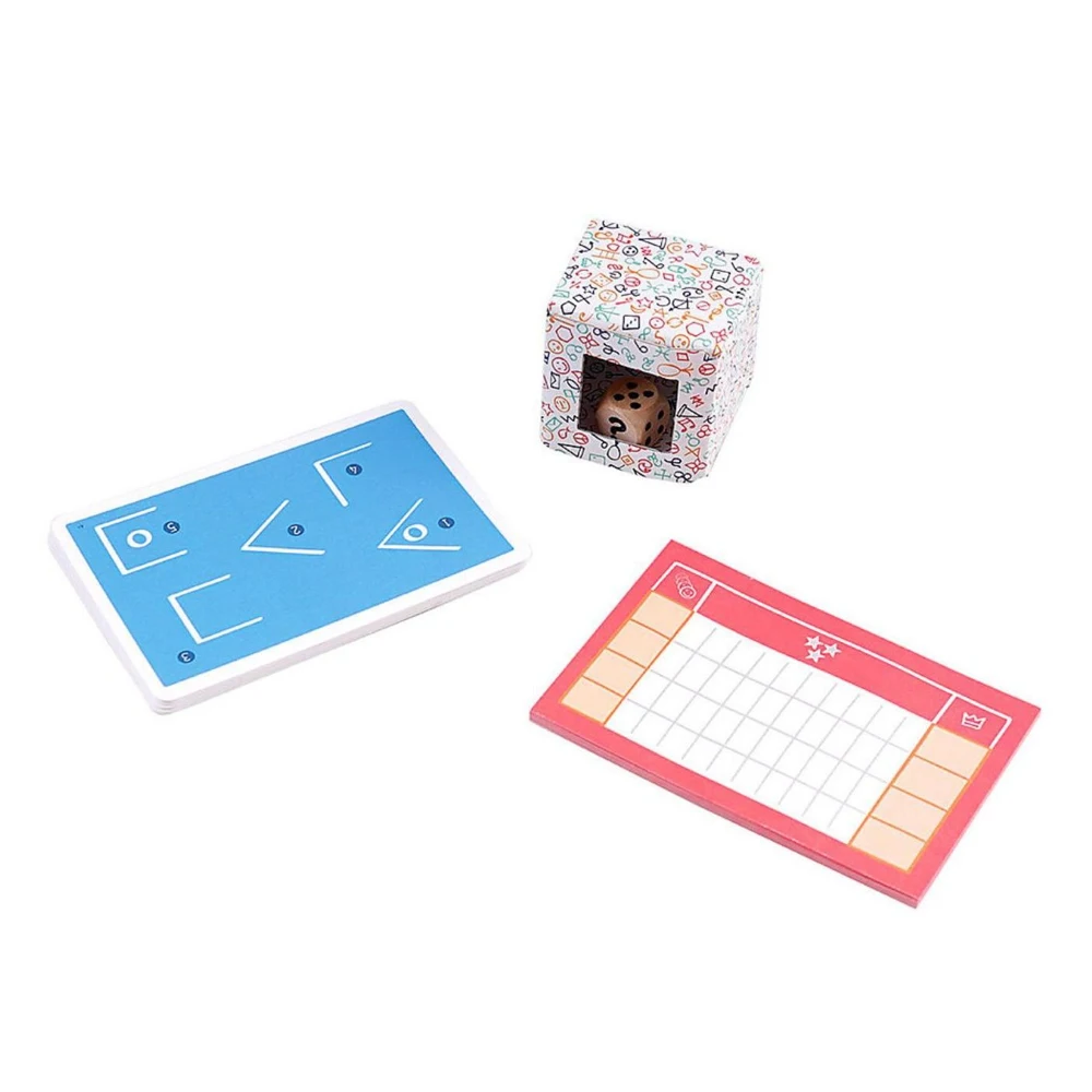 Двусторонние карты 96 шт Кубик Коробочка для кубика чтобы результат броска не был виден остальным игрокам Блокнот для подсчёта очков Правила игры