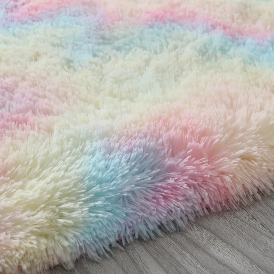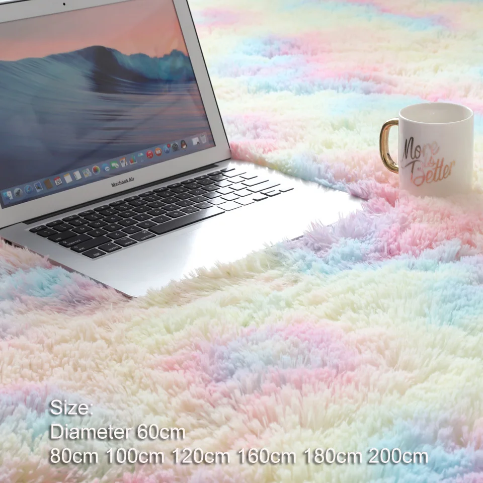 Радужный коврик, красочный ворсистый Мягкий Пушистый Плюшевый коврик, коврик для круглого стола, коврики для зоны волос, украшение для гостиной, спальни