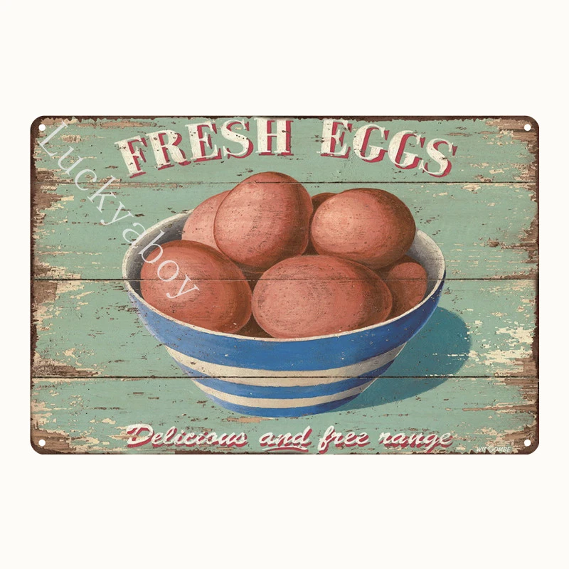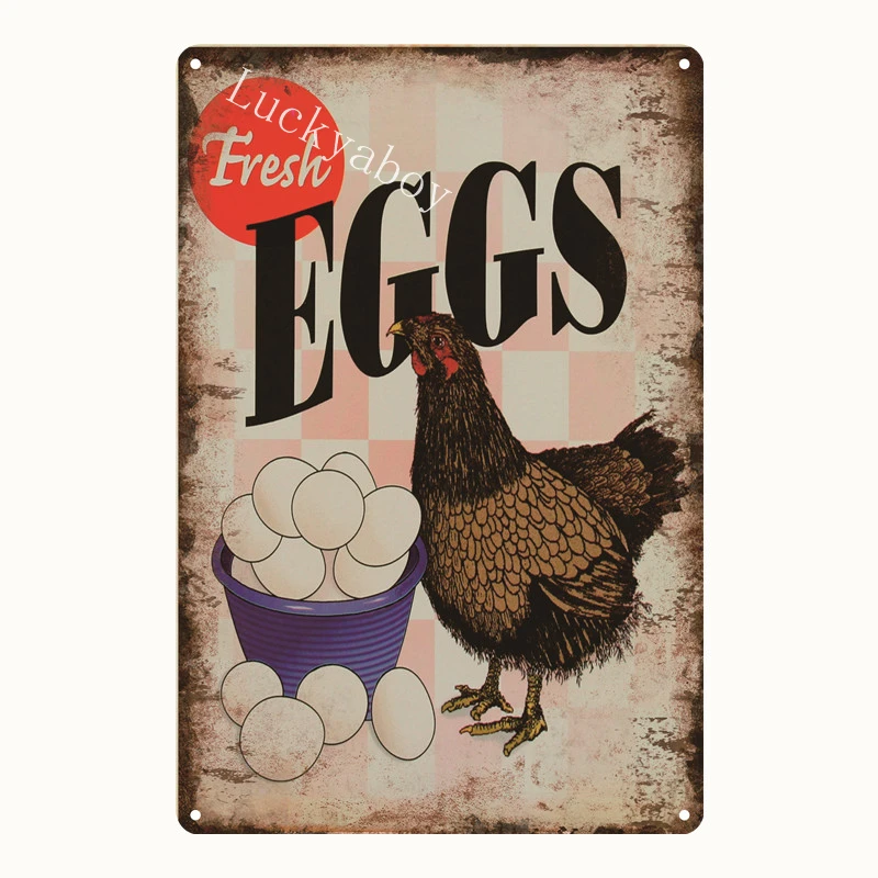 Luckyaboy фотообои с изображением свежих яиц, молочного молока, металлический знак для фермы, домашний фотопостер, Оловянная пластина, счастливая курица в стиле ретро AL006