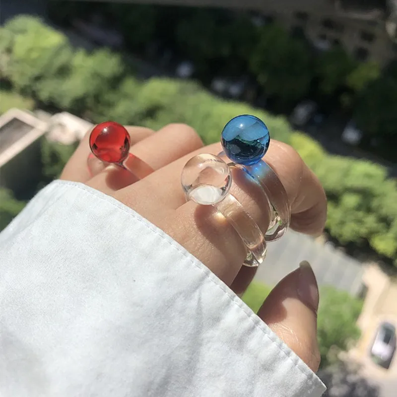 FFLACELL Новые разноцветные прозрачные акриловые кольца геометрические шарики стеклянные кольца для женщин и девочек корейские модные кольца ювелирные изделия подарки