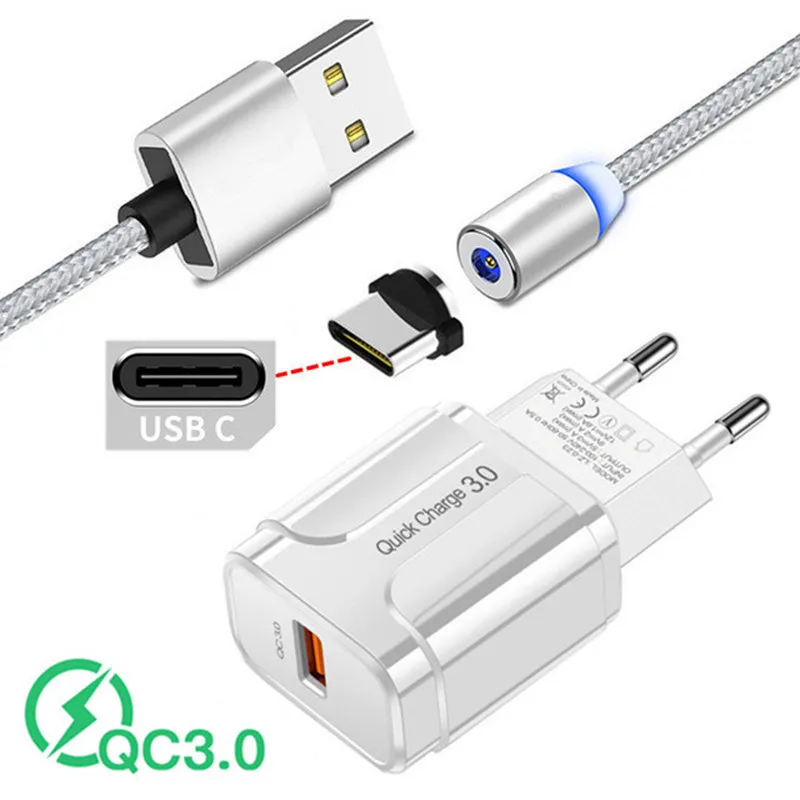 Быстрое зарядное устройство QC 3,0 usb с магнитным кабелем типа C д...