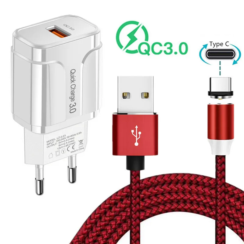 Быстрое зарядное устройство QC 3,0 USB, Магнитный зарядный кабель т...