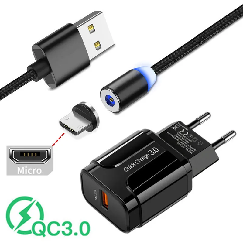 Магнитный Micro зарядный кабель QC 3,0 Быстрая зарядка USB адаптер для Samsung A01 Huawei P Smart 2019 Y5 Y6 Honor 7A Redmi Meizu M10