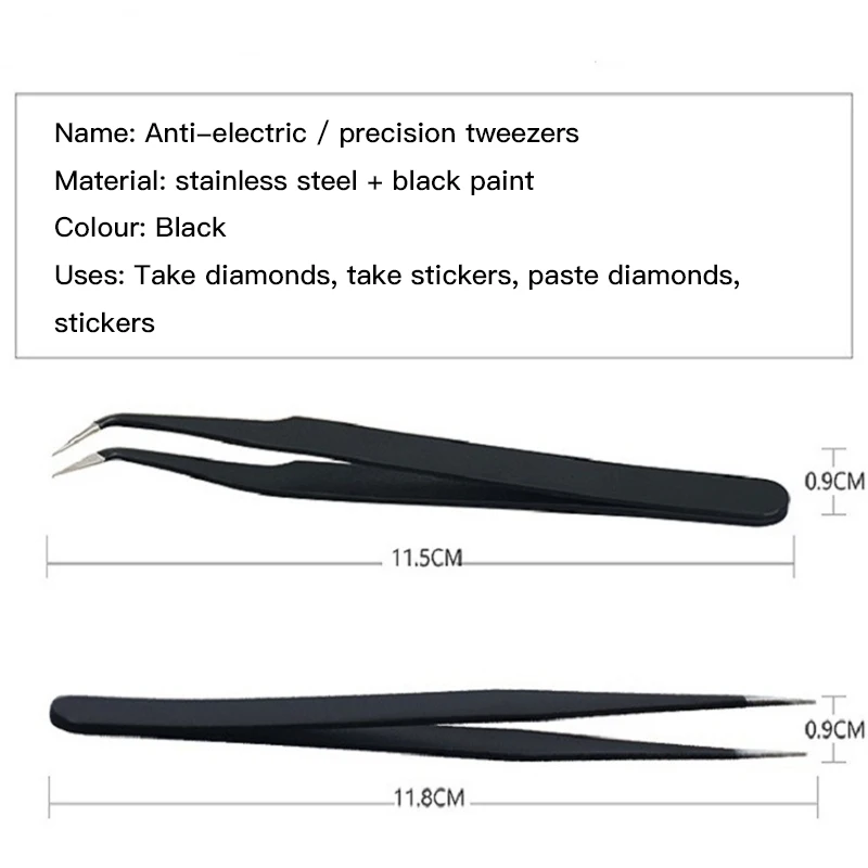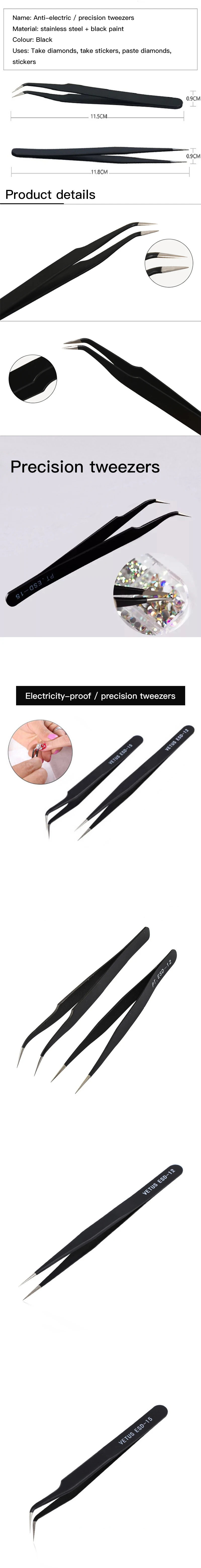 Профессиональные черные прямыеИзогнутые акриловые пинцеты, стразы д...