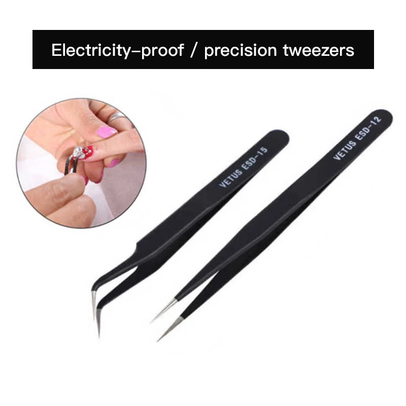 Набор антистатических прецизионных пинцетов Pinzas Pincet из нержавеющей стали, пинцет ESD, инструменты для ремонта электроники, 2 шт.