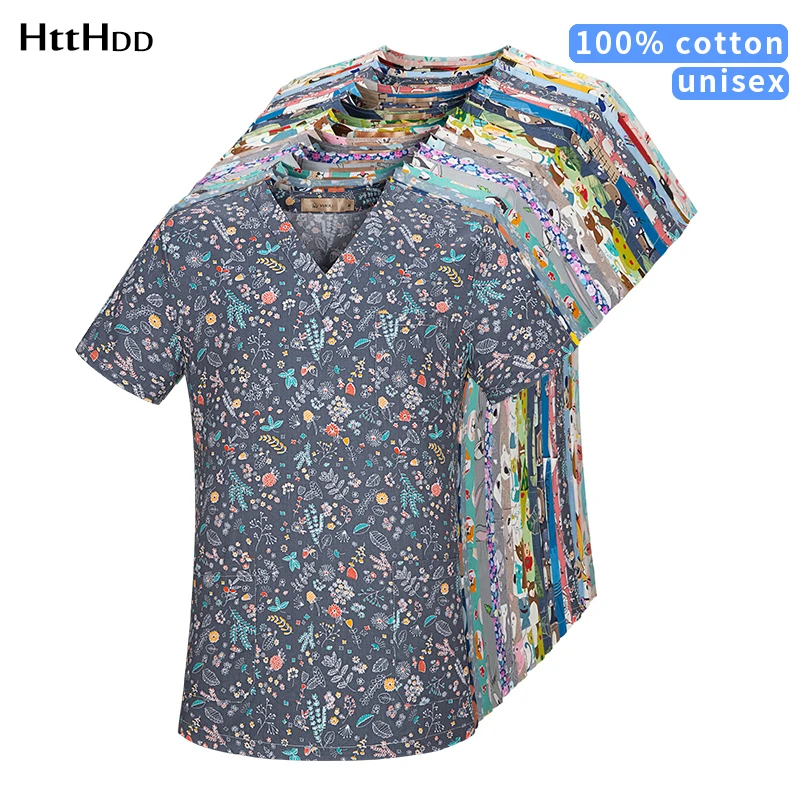 Униформа для медсестер htthdd, хлопковая, с цветочным принтом, лабораторная униформа