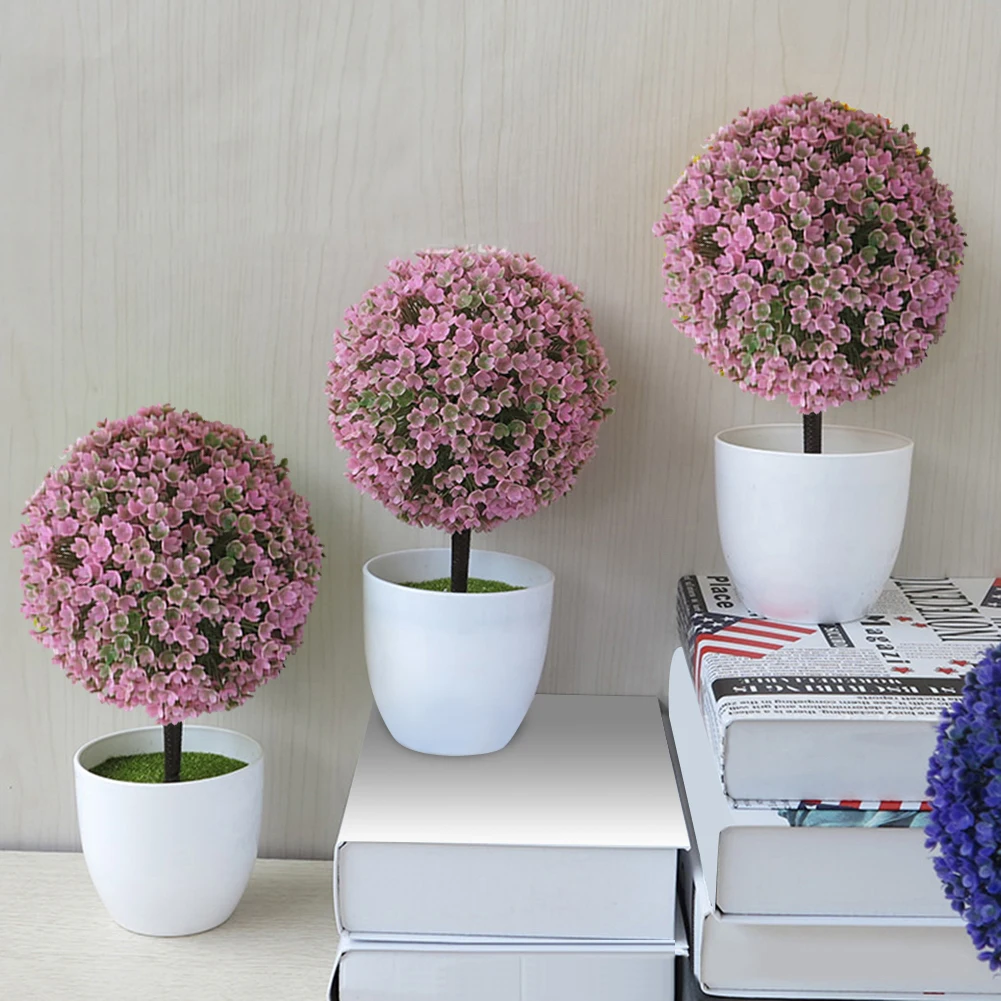 Искусственный горшечный орнамент Топиарий в форме шара, искусственный бонсай, растение для украшения дома, маленький горшок для деревьев, искусственные цветы