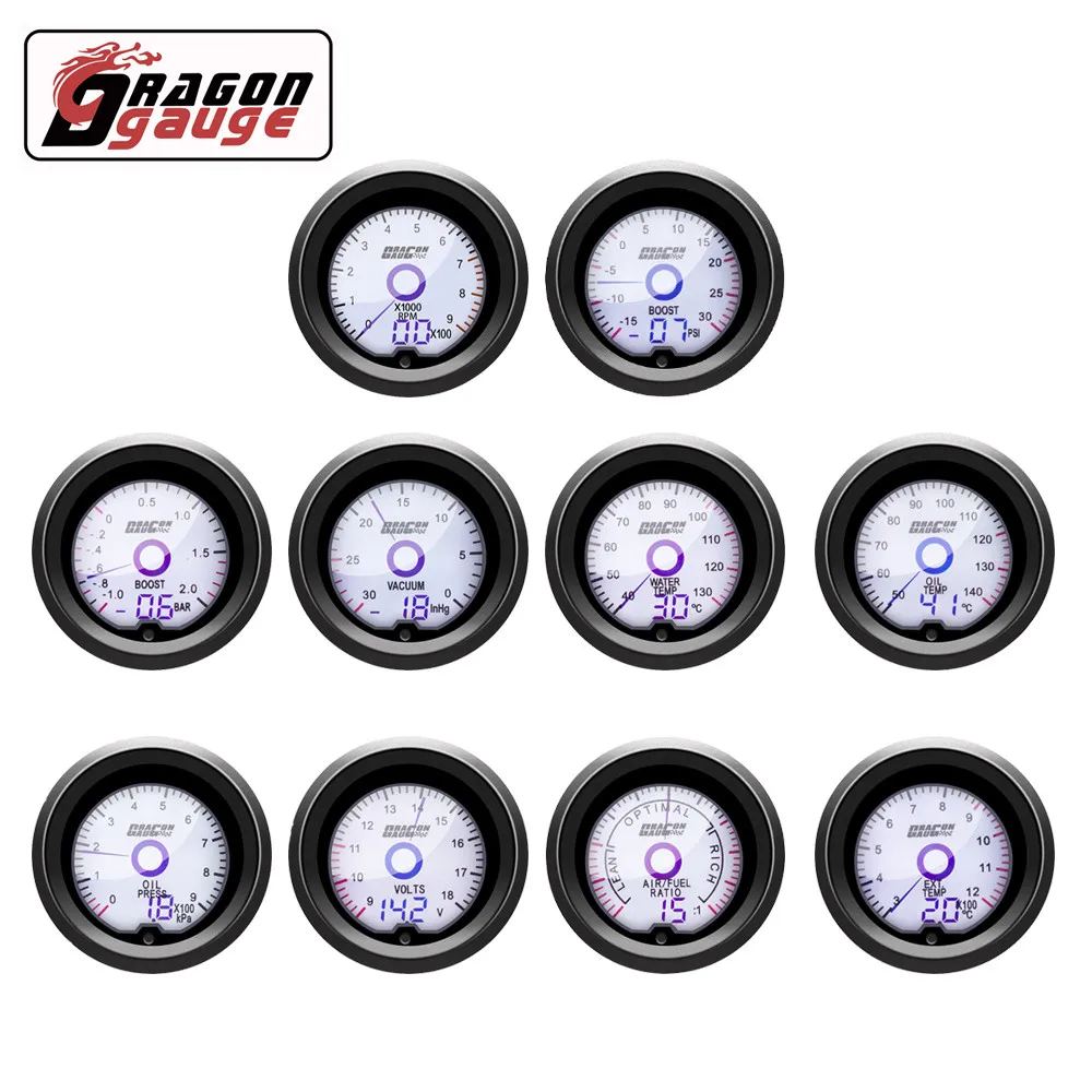 DRAGON 52 мм Вольтметр и тахометр повышение соотношения вакуумного воздуха и топлива температура воды, масла, давления масла, датчик для автомобиля с ЖК-дисплеем, для автомобиля 12 В
