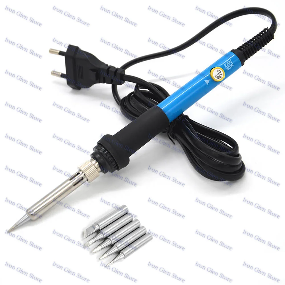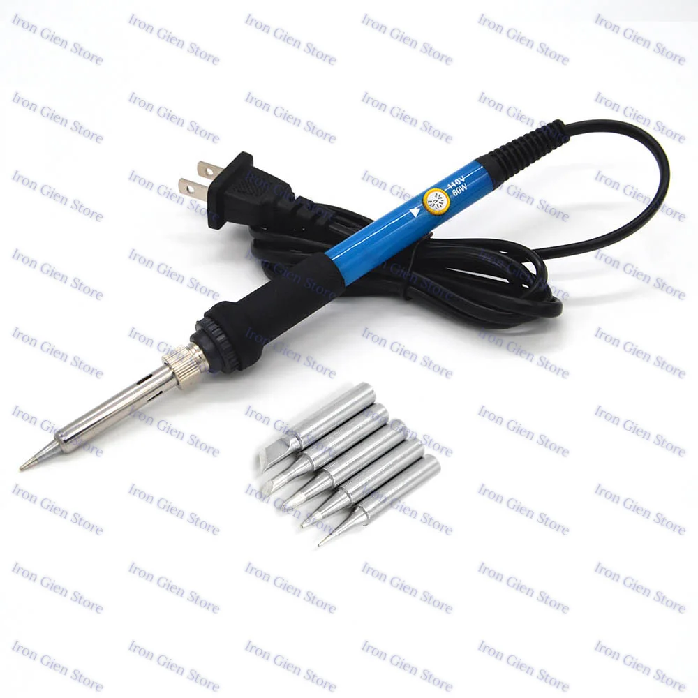 Электрический паяльник 60 Вт 220 В 110 В, паяльная станция с регулируемой температурой для переделки, сварочный пистолет, инструменты с 5 шт. наконечников для пайки, вилка для ЕС/США/CN