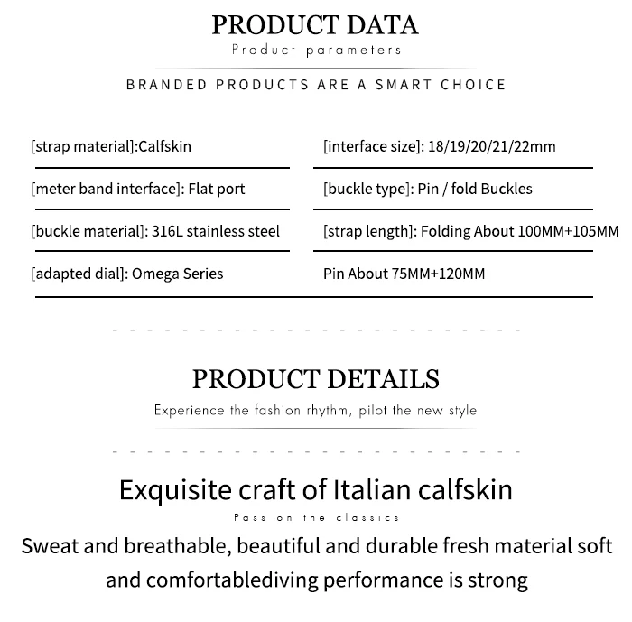 Ремешок из воловьей кожи для часов Omega 007 seamster 300 De ville AT150 1921 мм, складная пряжка, 18 мм 20 мм 22 мм