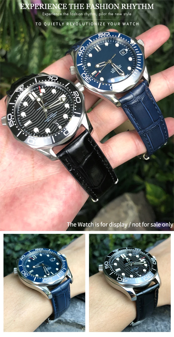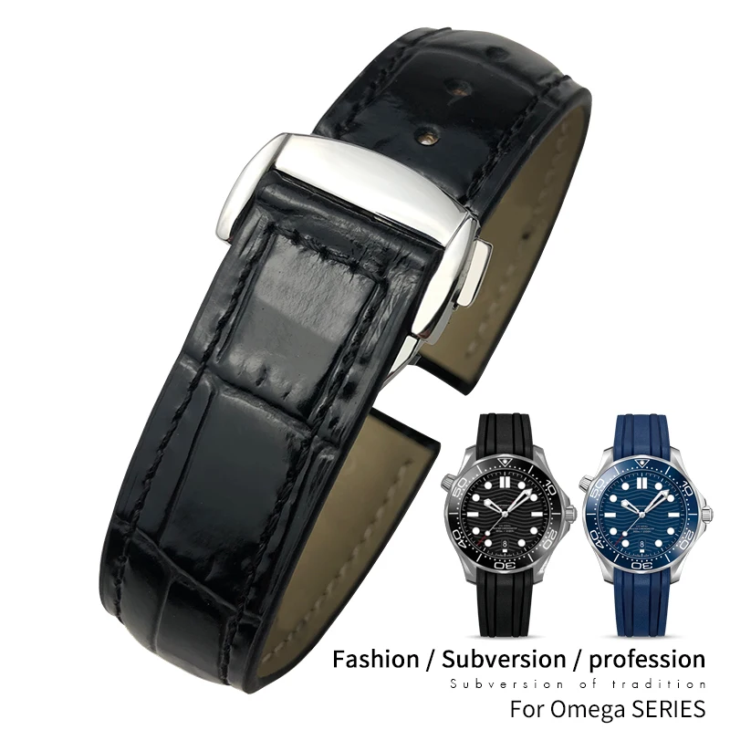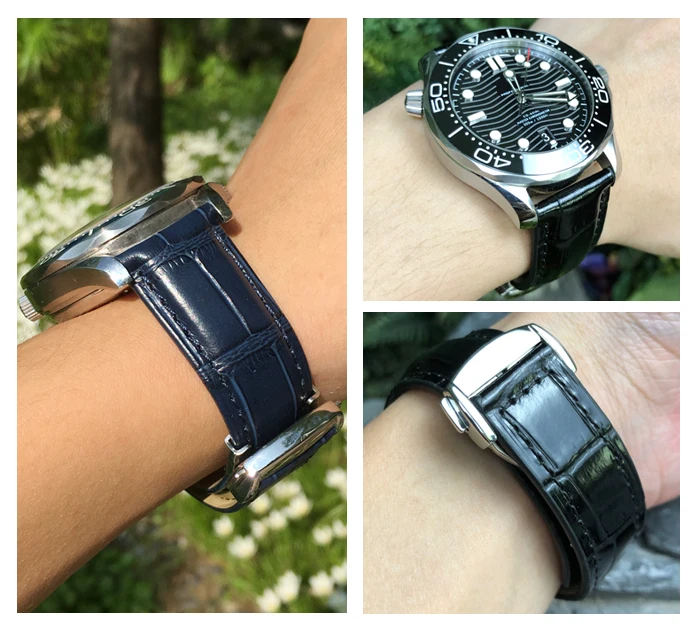 Кожаный ремешок для часов, черный браслет для часов Omega Seamaster...