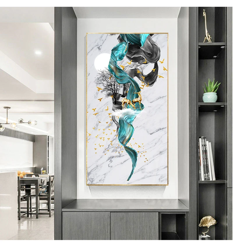 Современное абстрактное искусство, золотое дерево и птица, пейзаж, искусство на холсте, живопись, настенные картины для гостиной, домашний декор (без рамки)