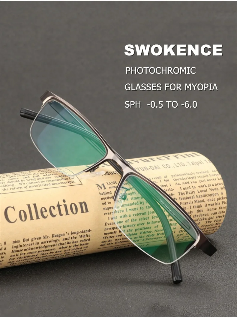 Это готовые очки для близорукости с фотохромные линзы, линзы будут прозрачными и бесцветными в помещении или в темных местах, но они будут темнеть на открытом воздухе или на солнце, чтобы защитить ваши глаза от сильного светильник.