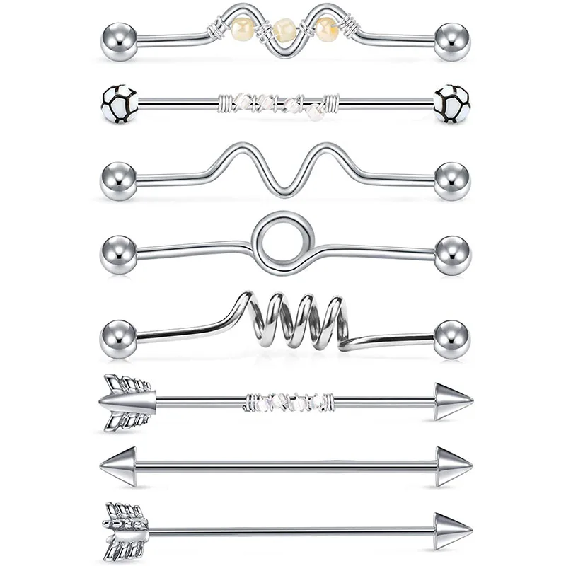 Упаковка: один заказ включает в себя 10 штук длинных промышленных штанг для пирсинга тела ювелирных изделий (ручной работы бисера обмотки стиль/Стрела/Con/катушка/волна/Твистер/сердце), набор для пирсинга в смешанном стиле подарит вам очаровательный наряд.