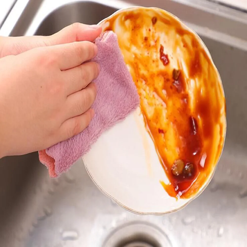 Коралловая бархатная салфетка для мытья посуды, впитывающее полотен...