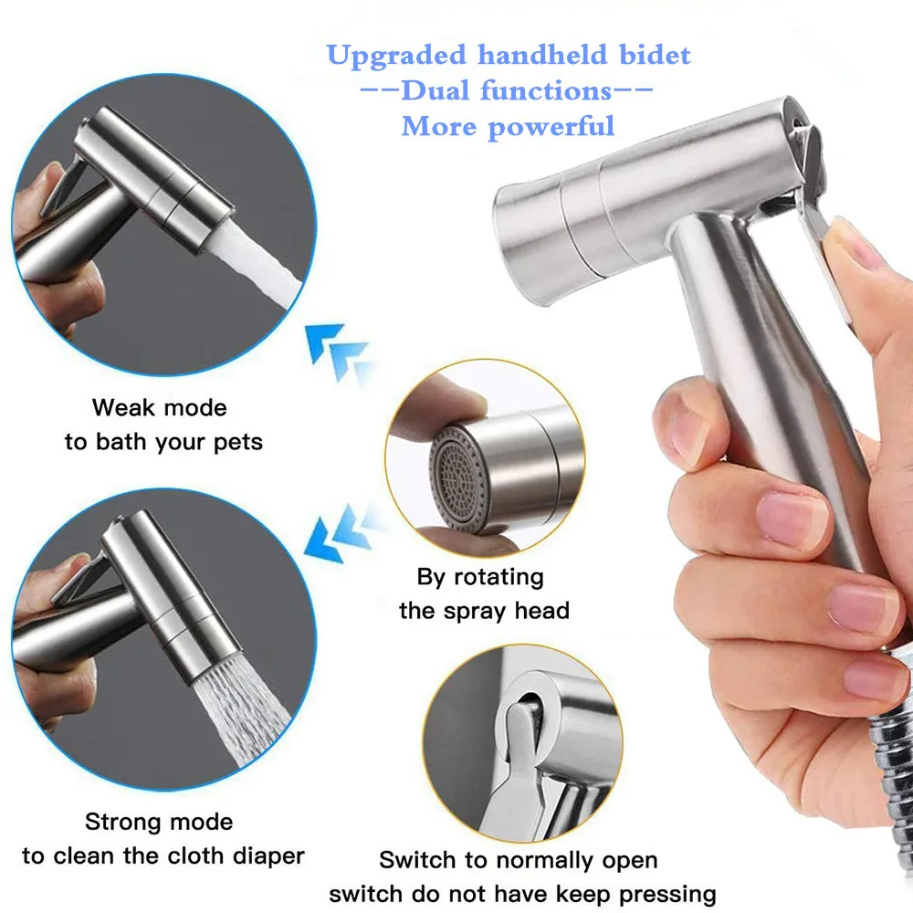 【Контроль давления воды и модернизированная латунная T valve】покупка биде опрыскивателя для туалета, у вас есть возможность переключаться между двумя вариантами распыления и контролировать давление воды на Т-клапанном адаптере. С этими вариантами, вы можете ограничиться брызгами и все еще можете распылить самый жесткий беспорядок. Особенно подходит для взрослых и пожилых людей. Обновленный дизайн ручного биде Т-адаптер, отличающийся от обычного Т-дивертера, построенный керамическим и латунным дисковым картриджем, чтобы обеспечить долговечность и отсутствие утечки.