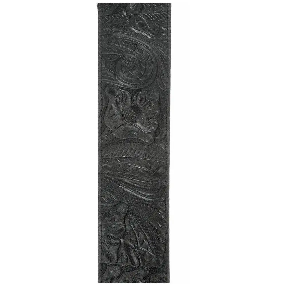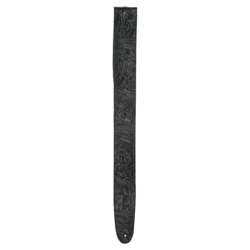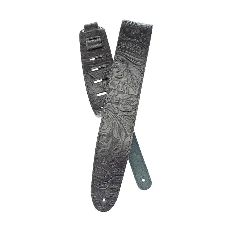 Ширина: 2,5" (6,4 см.) Регулируемая длина: от 44.5" (113.03 см.) до 53" (134,62 см.) Материал: высококачественная кожа Подкладка: замша Тиснение "цветы" по всему ремню Цвет: черный Без наплечника Обеспечивает максимальное удобство при выступлении стоя