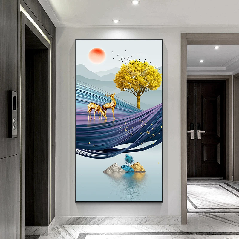 Современный абстрактный Золотой пейзаж Плакаты и принты картины на ...
