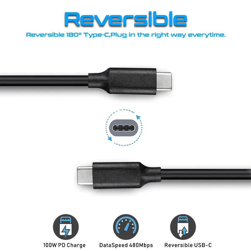 Кабель USB-C, 100 Вт, PD, 5 А, USB-C, USB3.1 Gen 2, для Macbook, SA...