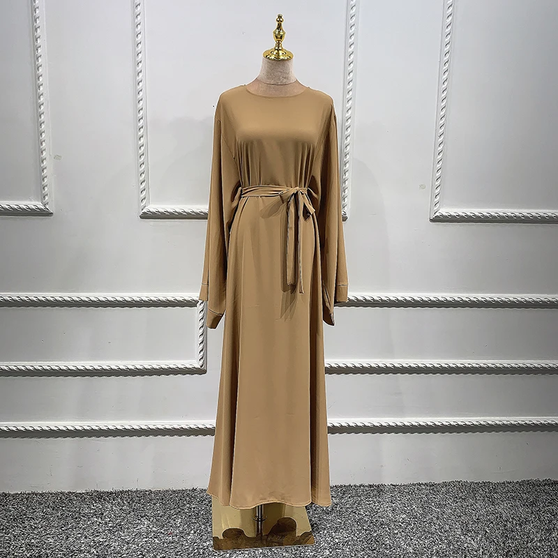 Женское длинное платье Nida Abaya, скромное летнее платье макси с длинным рукавом, мусульманские, однотонные элегантная одежда, однотонная одежда, Дубай, Турция