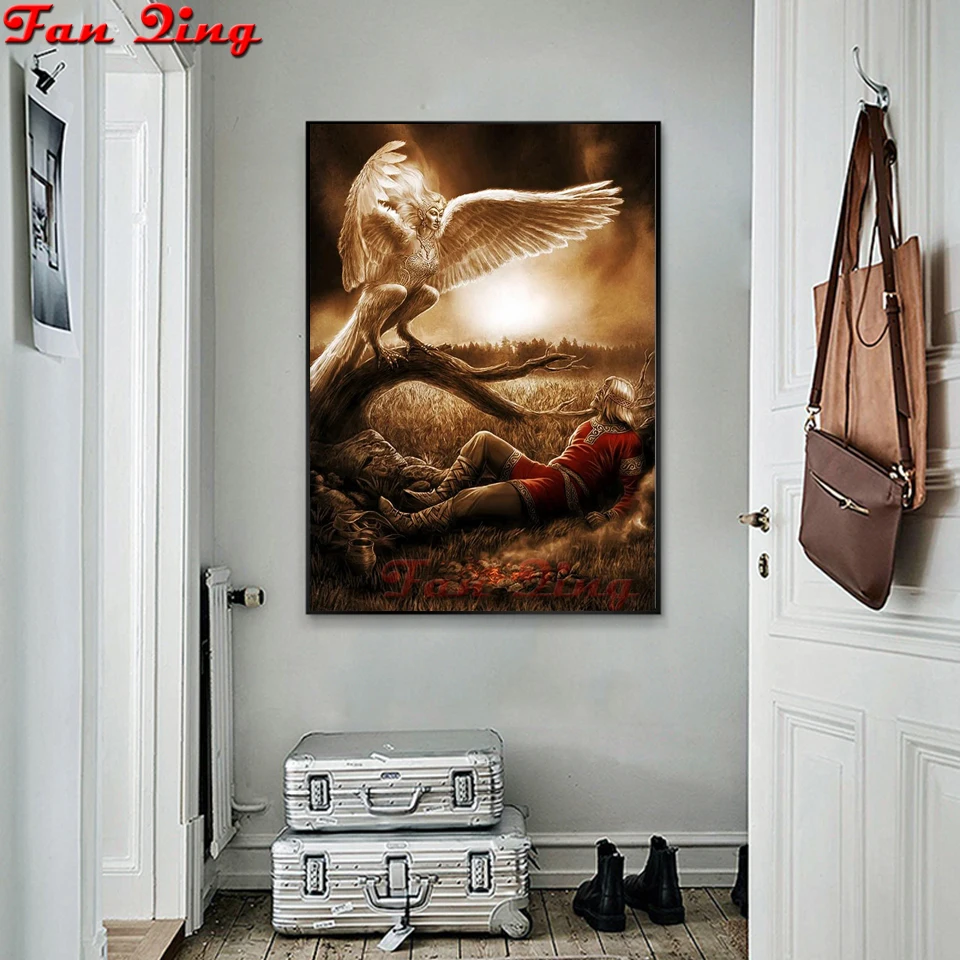 Бриллиантовая вышивка Фэнтези art Русский ангел и охотник 5D алмазная живопись сделай сам, полноразмернаяКруглая Мозаика, настенное искусство
