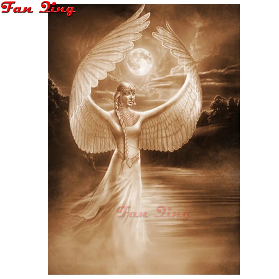 Полный квадрат 5D DIY Алмазная картина женщина Ангел-белое крыло Ал...
