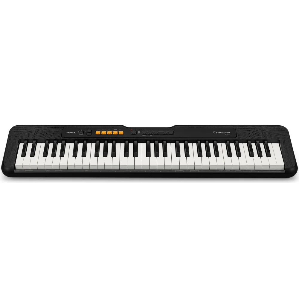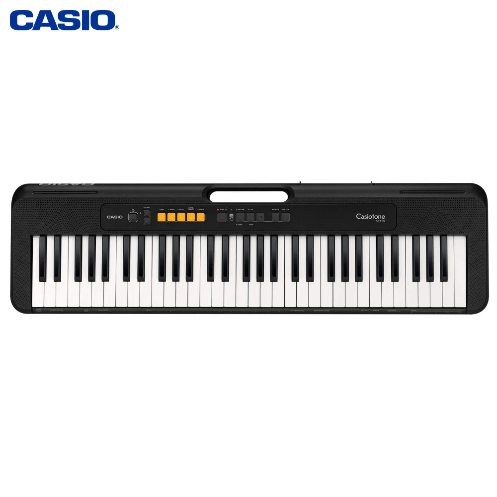 Casio CT-S100 – это цифровой синтезатор начального уровня, относящийся к линейке CasioTone, которая названа в честь первого портативного инструмента компании, выпущенного в 1980-м году и имевшего цель сделать подобные устройства доступными для большинства людей за счет низкой цены, малых габаритов и дружелюбного функционала. Данная модель из обновленной серии является самой младшей и предлагает скромное по современным меркам количество встроенных звуков, а также только самые необходимые функции для домашних занятий, репетиций и выступлений на концертах.